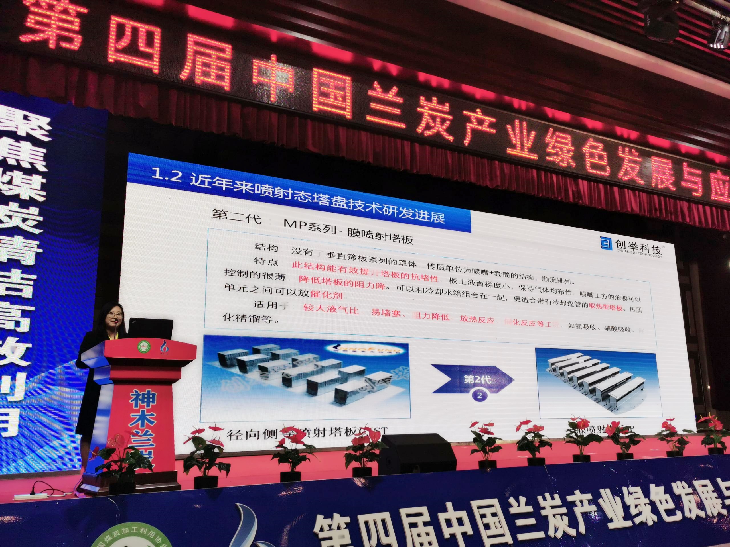 創(chuàng)舉科技技術(shù)部長趙順雯以《高效噴射塔盤技術(shù)在蘭炭及煤化工領(lǐng)域的廣泛應(yīng)用》為題展開精彩的演講,會上創(chuàng)舉科技高效噴射態(tài)塔盤技術(shù)受到了與會專家的廣泛關(guān)注。